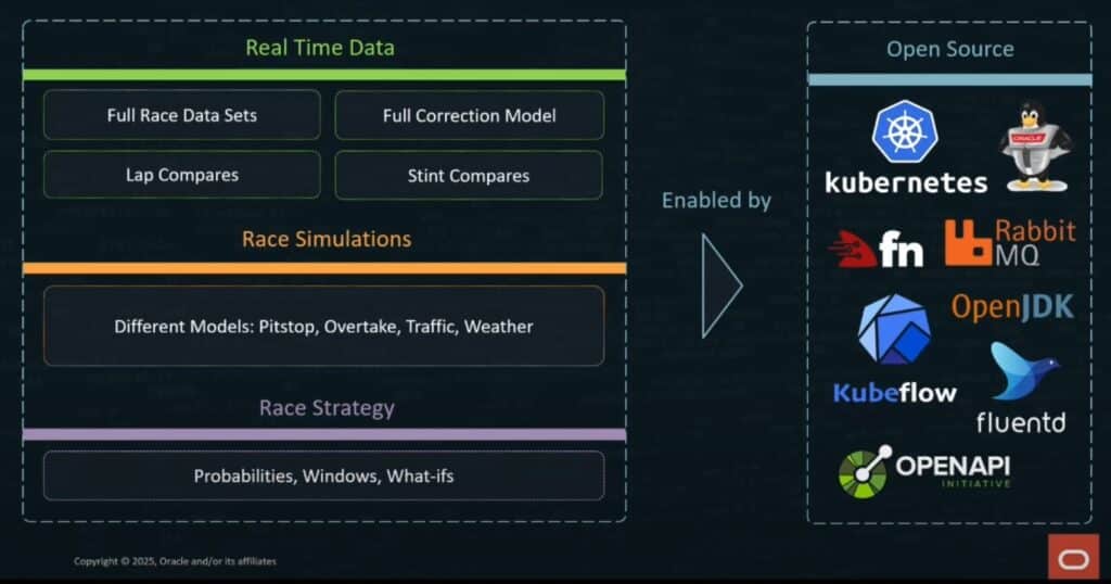 On April 17, 2025, Oracle hosted an analyst event in Nashville, covering the Oracle Cloud Infrastructure (OCI) product strategy, including dedicated clouds. Oracle also participated in the Cloud Native Computing Foundation (CNCF) event in London from April 2 to 4, 2025. At the keynote, Sudha Raghavan, Senior Vice President of Oracle Developer Platform, discussed how open-source technology is utilized in OCI and applied to Formula 1 racing (See Figure 1).
